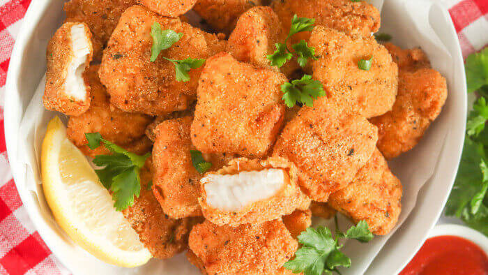 Fried fish Nuggets ( Catfish / Swai fish ): 20 Pieces, Regular Fries, 1 DIP